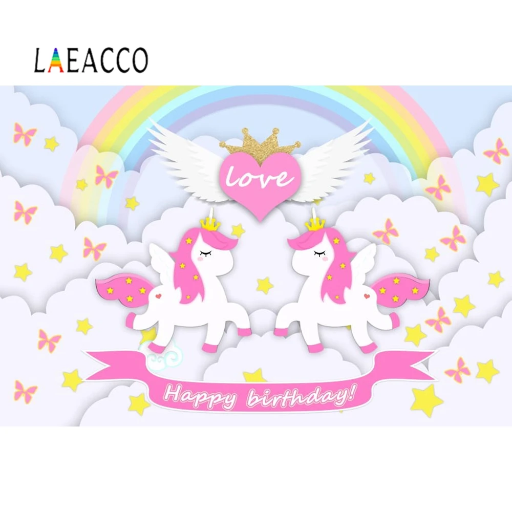 Best Laeacco Castle Unicorn Party Photography Backgrounds Customized Baby Shower Photocall Photographic Backdrops for Photo Studio Free Shipping