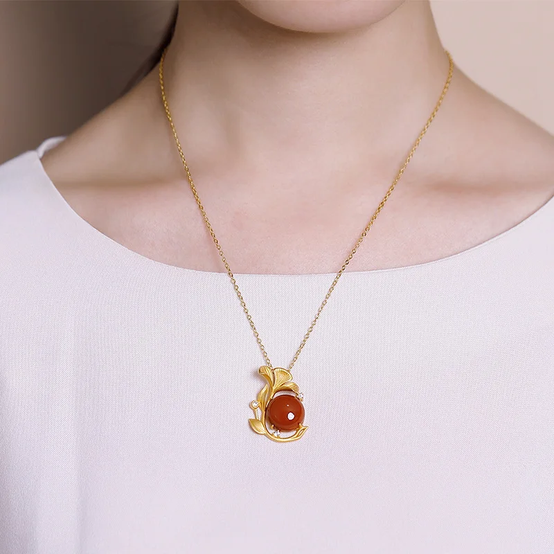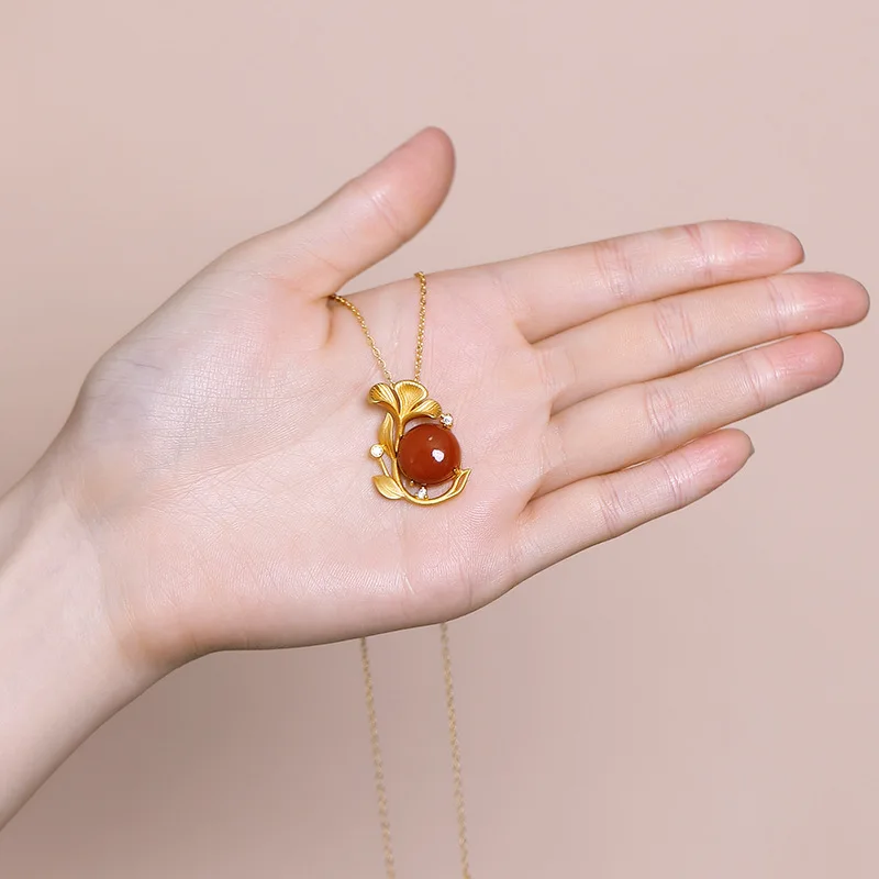 Addition Information of LATS Natural Red Agate Vintage Pendant Necklace 925 Sterling Silver Gold-plated Ginkgo Leaf Necklace for Women 2020 Fine Jewelry