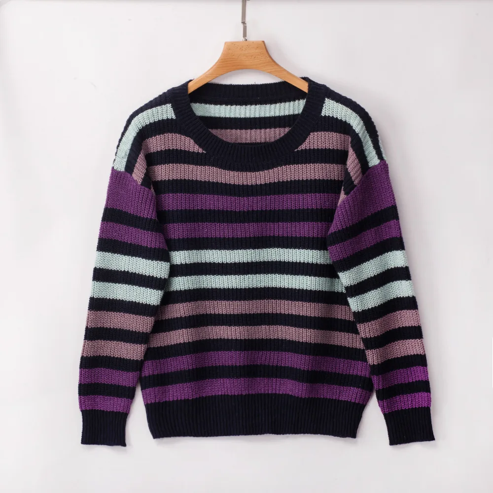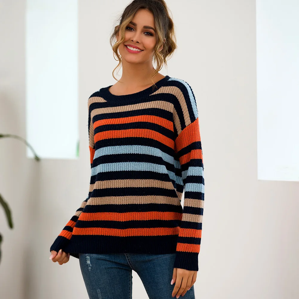 Best New Autumn Winter Striped Sweater Women O Neck Long Sleeve Casual Jumpers Ladies Contrast Color Damen Pullover 2020 Jersey Mujer Free Shipping