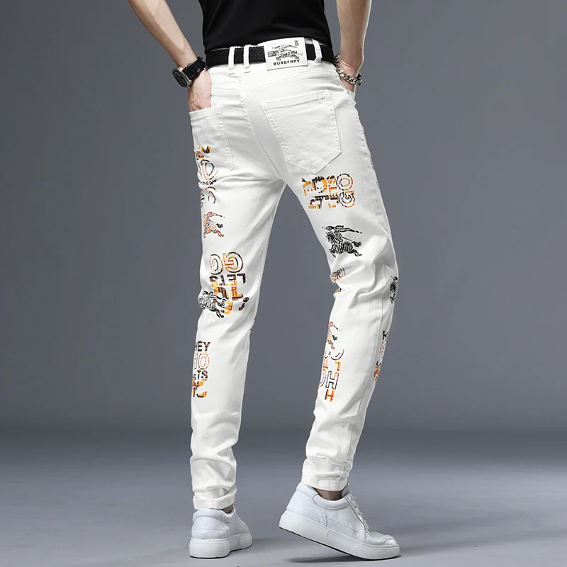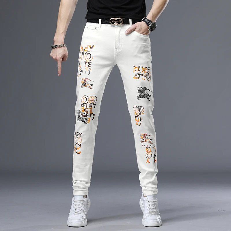 Buy POVOTE jeans men's hip hop trend pants slim pencil pants men's jeans locomotive jeans cartoon embroidery trend design up to 2098-12-31, and You will Save US $10.73 or 29%, Becuase You Just Pay for 26.27 not Full Price for 37.00