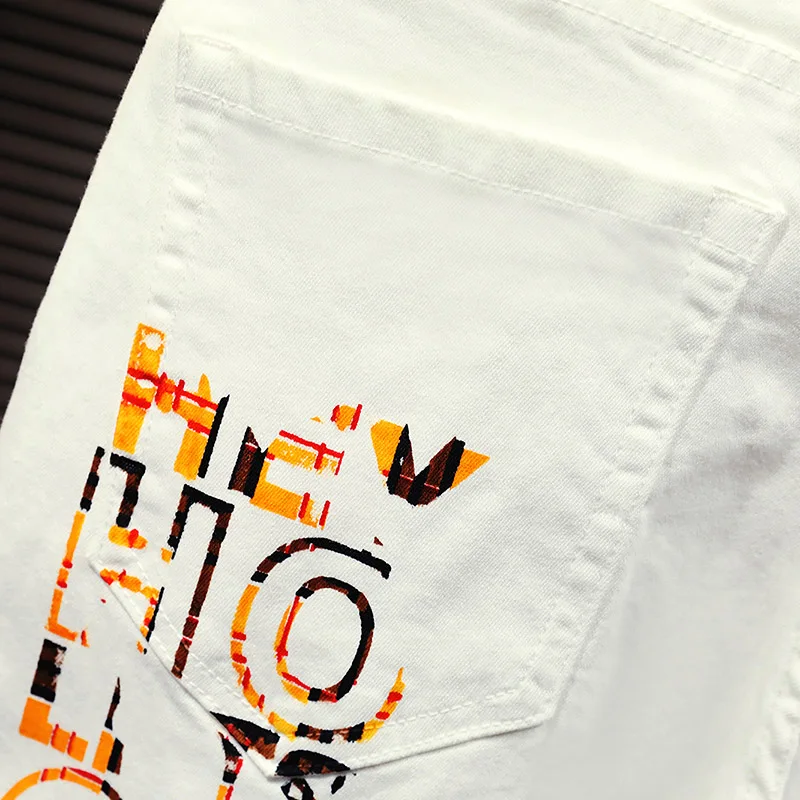Related Product for [KEYWORD] and POVOTE jeans men's Retro nostalgic straight pants stitching embroidery men's jeans pants motorcycle jeans trend design white OSKPOVOTE jeans men's hip hop trend pants slim pencil pants men's jeans locomotive jeans cartoon embroidery trend design