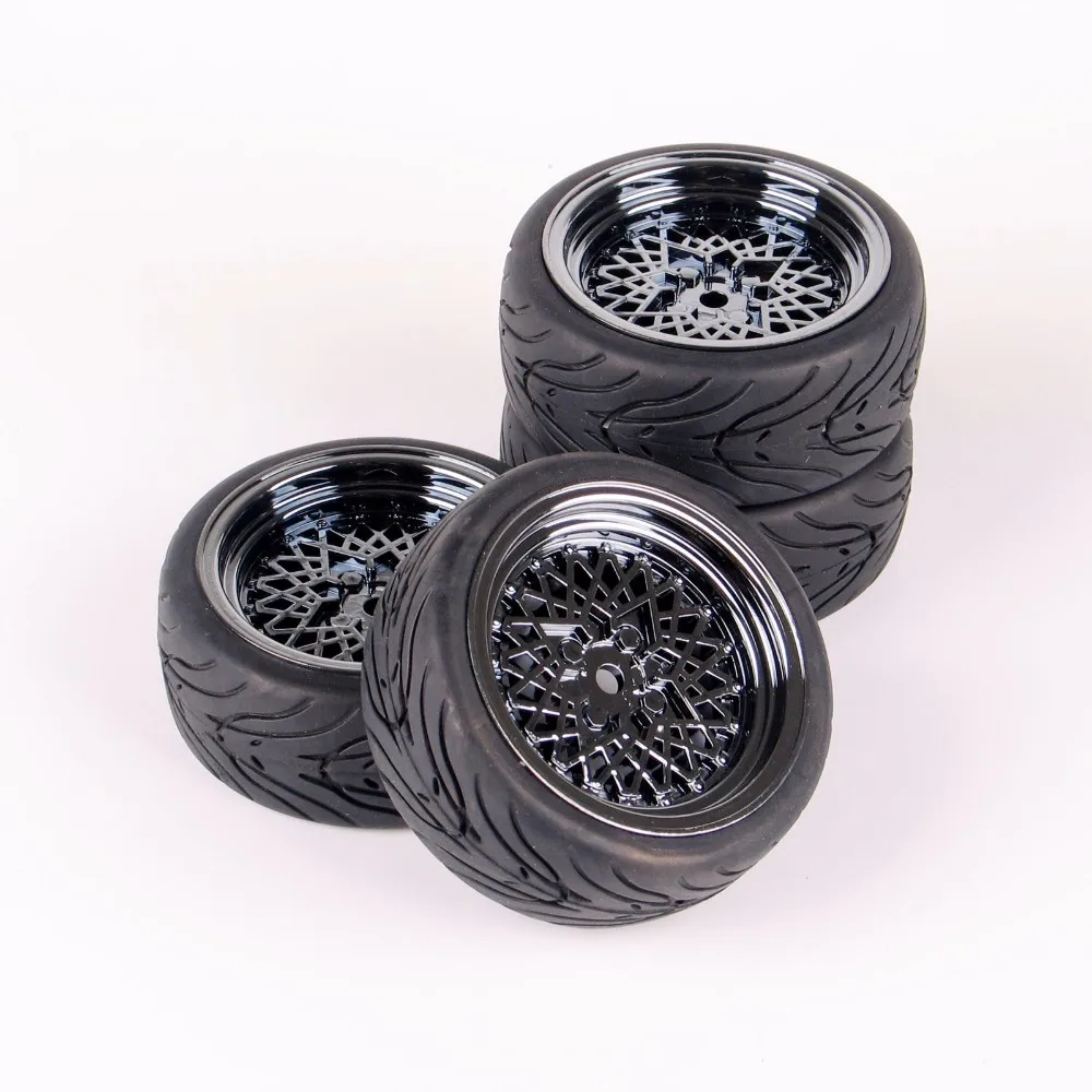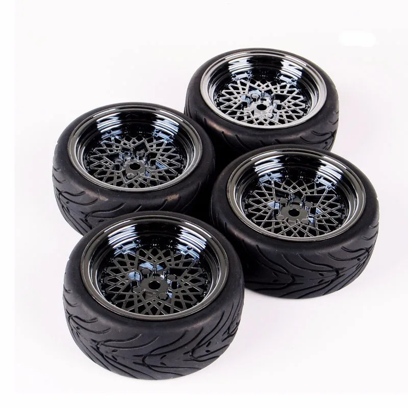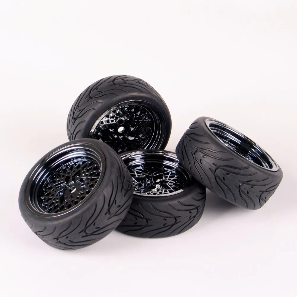 .Gallery for rubber tires & wheel for HSP HPI RC 1:10 flat racing on road car 4pieces/set parts accessory