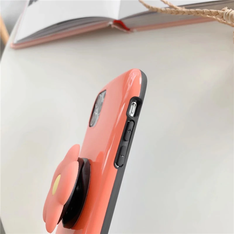 .Gallery of Solid color waist phone case for iphone xs max with flower stand 11pro xr 6s 7 8 plus stylish shatter-resistant rear case