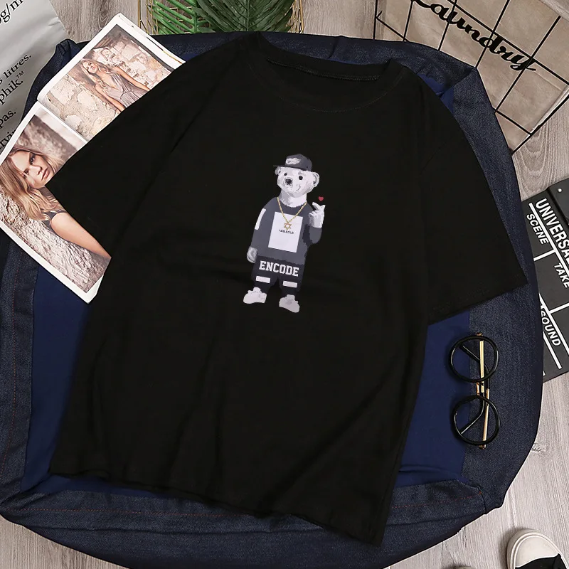 Chance Description for 2020 cartoon bear t-shirt women short sleeves summer shirts Teddy bear young girl Love gift Couple shirt women top tees