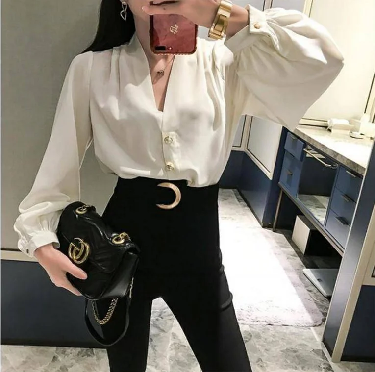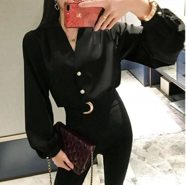 0 Response to "Cheap 2020 Women Satin Blouse V-neck Causal Shirt Spring Office Clothes Top Free Shipping"