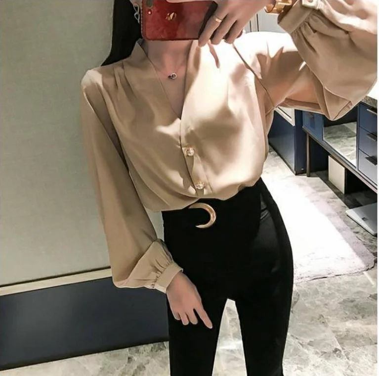 If You will buy for Blouses , then 2020 Women Satin Blouse V-neck Causal Shirt Spring Office Clothes Top may be make you love