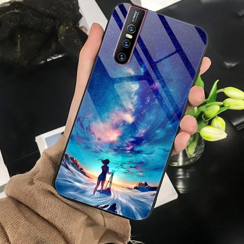 .Gallery for Back Cover For Vivo V15 pro 1818 Tempered Glass Phone Case For Vivo V15 1819 V15pro Coque Soft TPU Bumper Star Pattern Skin Capa