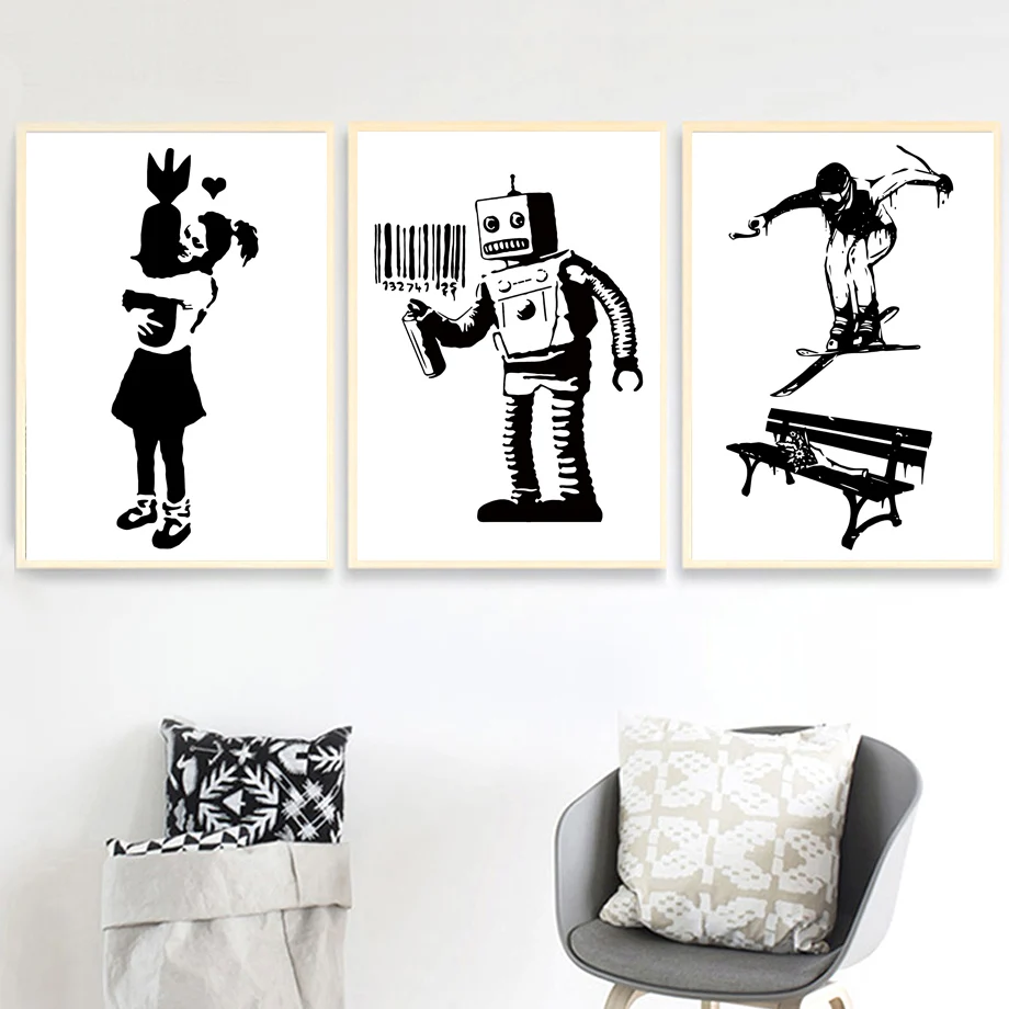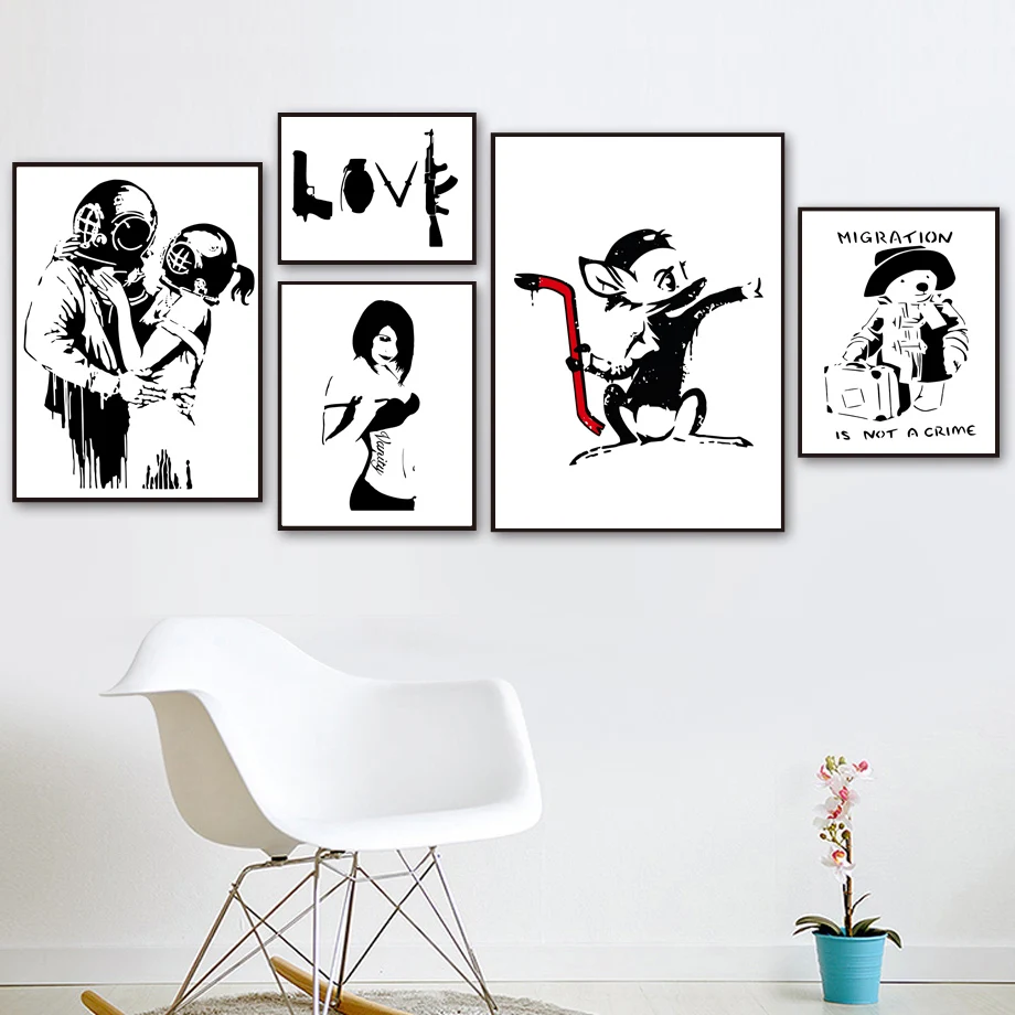 .Gallery of Banksy Graffiti Funny Minimalist Abstract Nordic Posters And Prints Wall Art Canvas Painting Wall Pictures For Living Room Decor