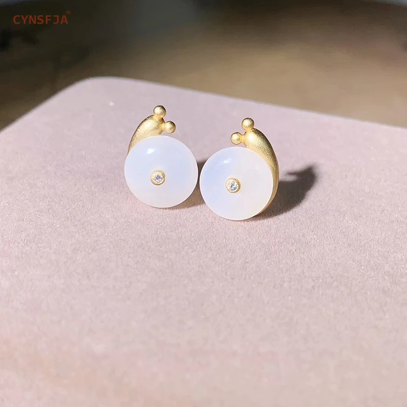 .Gallery for CYNSFJA New Real Certified Natural Hetian Jade 925 Sterling Silver Amulet Peace Buckle White Jade Earring High Quality Best Gift