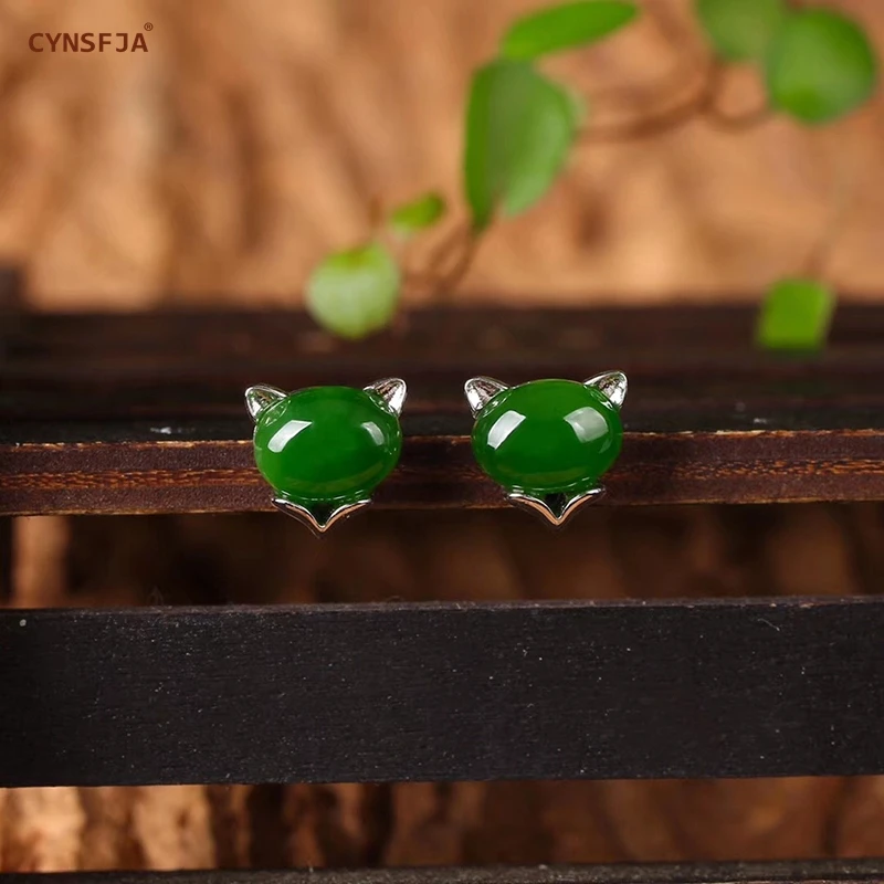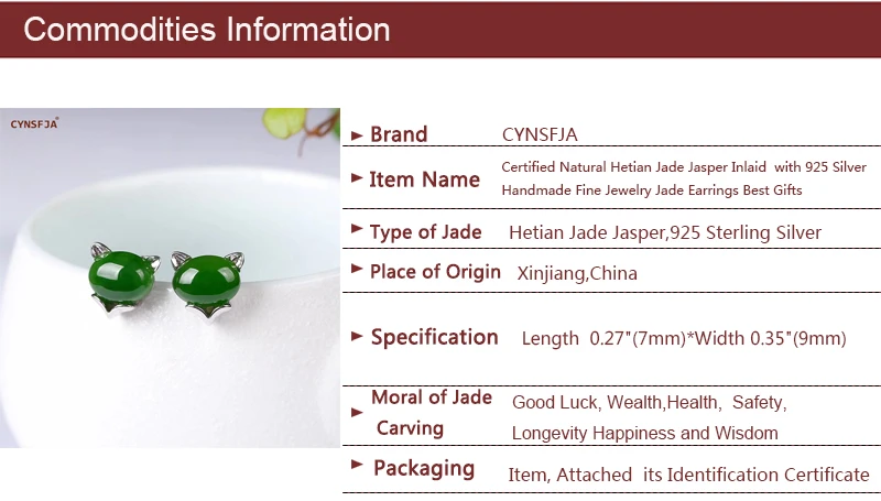 Addition Information of CYNSFJA Real Certified Natural Hetian Jade Jasper 925 Sterling Silver Fine Jewelry Green Jade Earrings High Quality Best Gifts