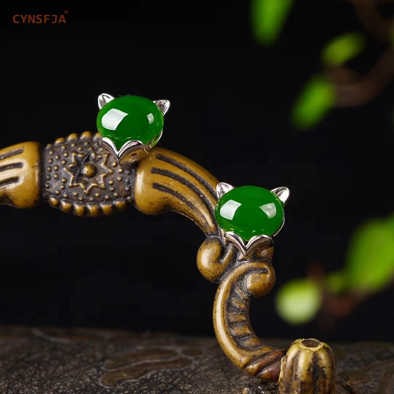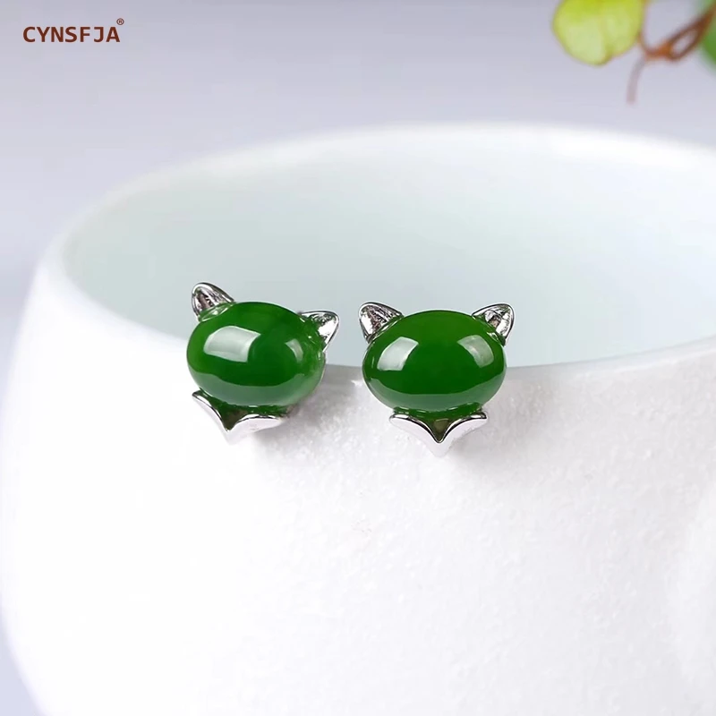 .Images of CYNSFJA Real Certified Natural Hetian Jade Jasper 925 Sterling Silver Fine Jewelry Green Jade Earrings High Quality Best Gifts