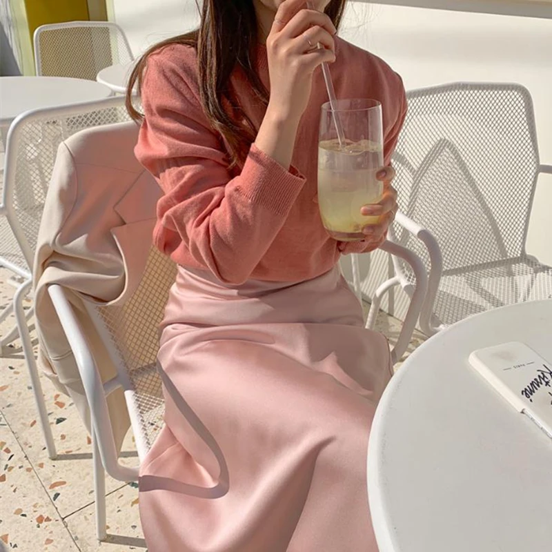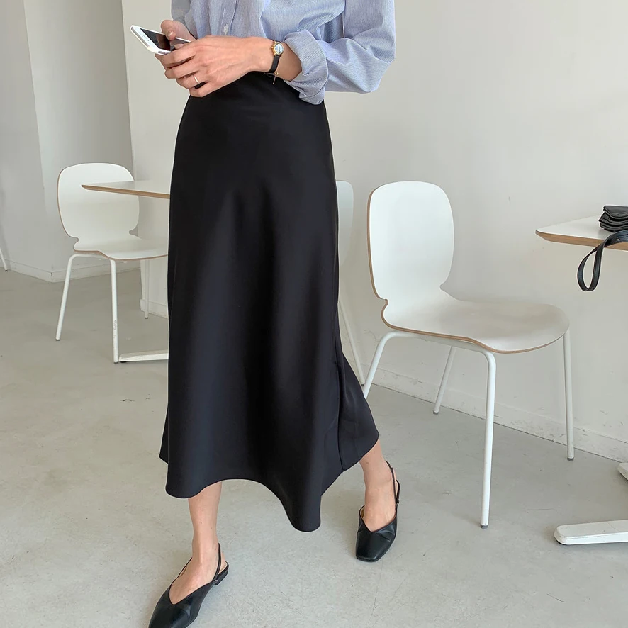 Addition Information of Korean Casual Skirts Women Silk Skirt Women Elegant Satin Long Skirts Office Lady High Waist Bodycon Skirt Faldas Mujer Moda