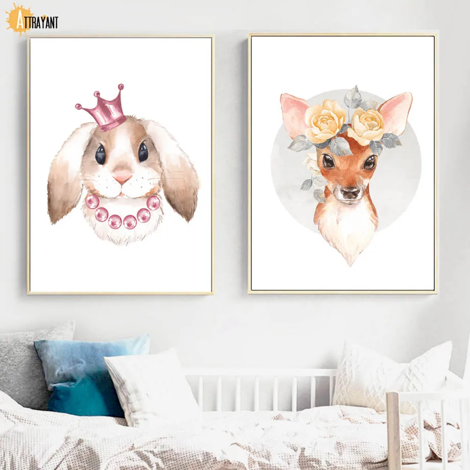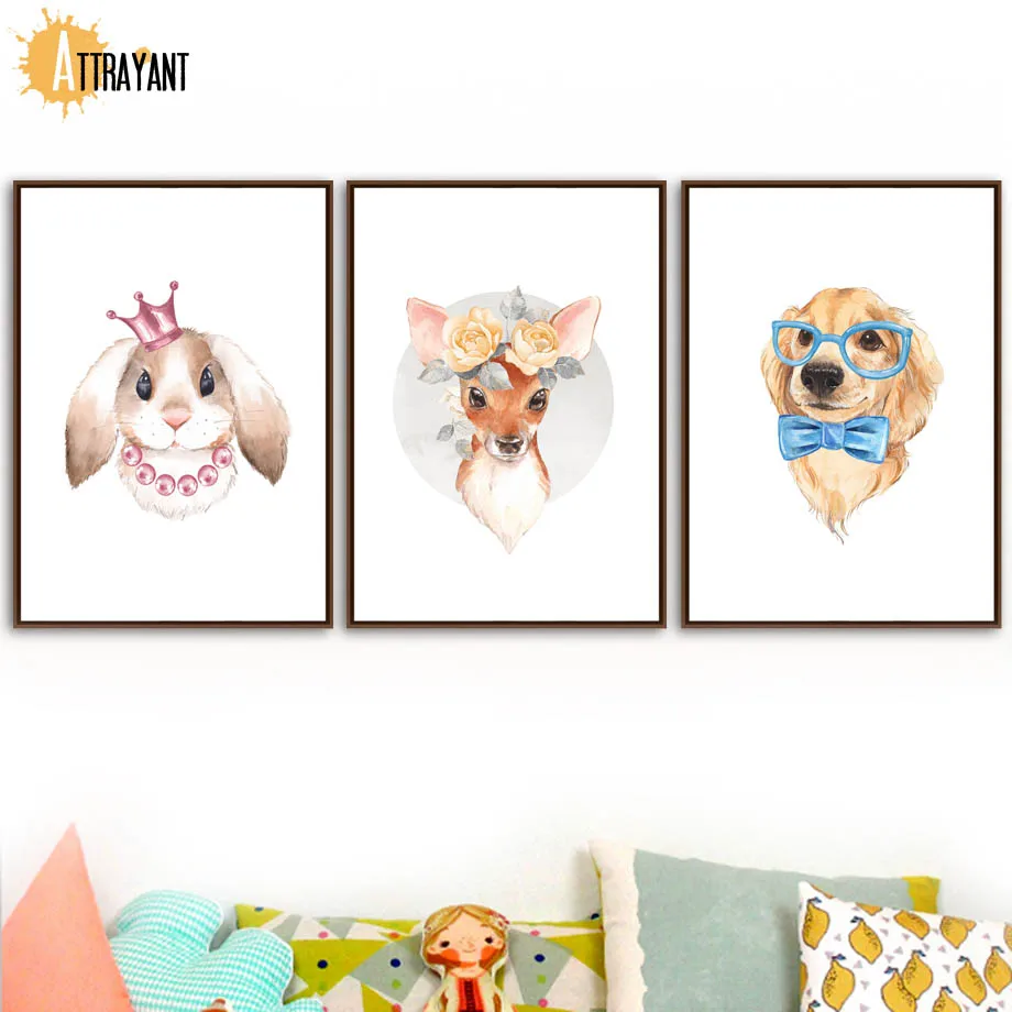 .Gallery of Modern Cute Rabbit Deer Dog Wall Art Canvas Painting Nordic Posters And Prints Wall Pictures For Living Room Kids Bedroom Decor