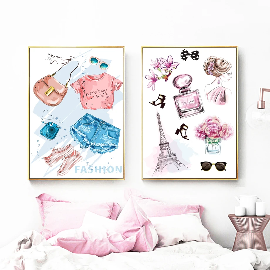 Price Description for Paris Fashion Women Flower Apparel Wall Art Canvas Painting Nordic Posters And Prints Wall Picture For Living Room Bedroom Decor