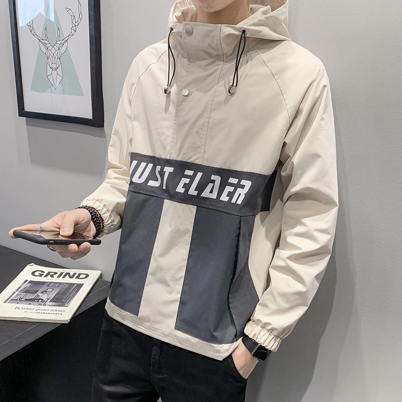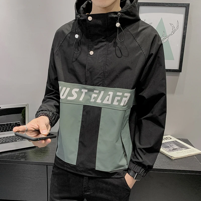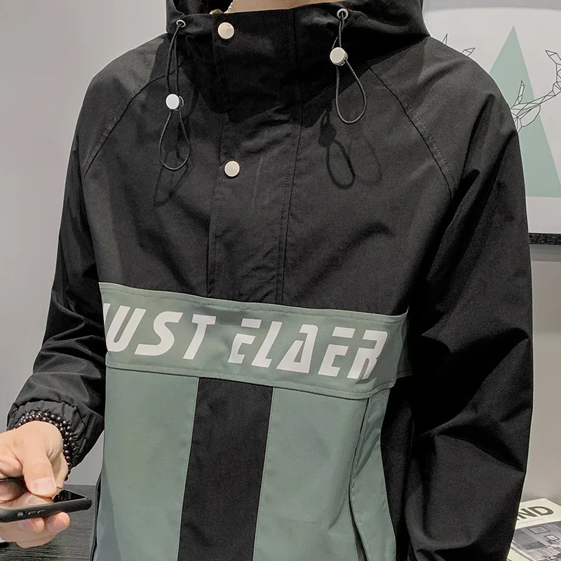 .Images of Pullover Jacket Men's Fashion Hit Color Casual Hooded Jacket Mens Streetwear Wild Loose Hip Hop Bomber Jacket Men Outwear M-3XL