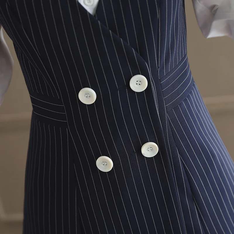 Related Product for [KEYWORD] and Set female 2018 spring and summer new temperament white shirt + elegant striped vest +casual pants fashion wild three-piece suitShort Sleeve Two Piece Set Skirt Suit Elegant Ruffle Waist Work Clothes Interview Sales Career Suit Summer Clothes For Women