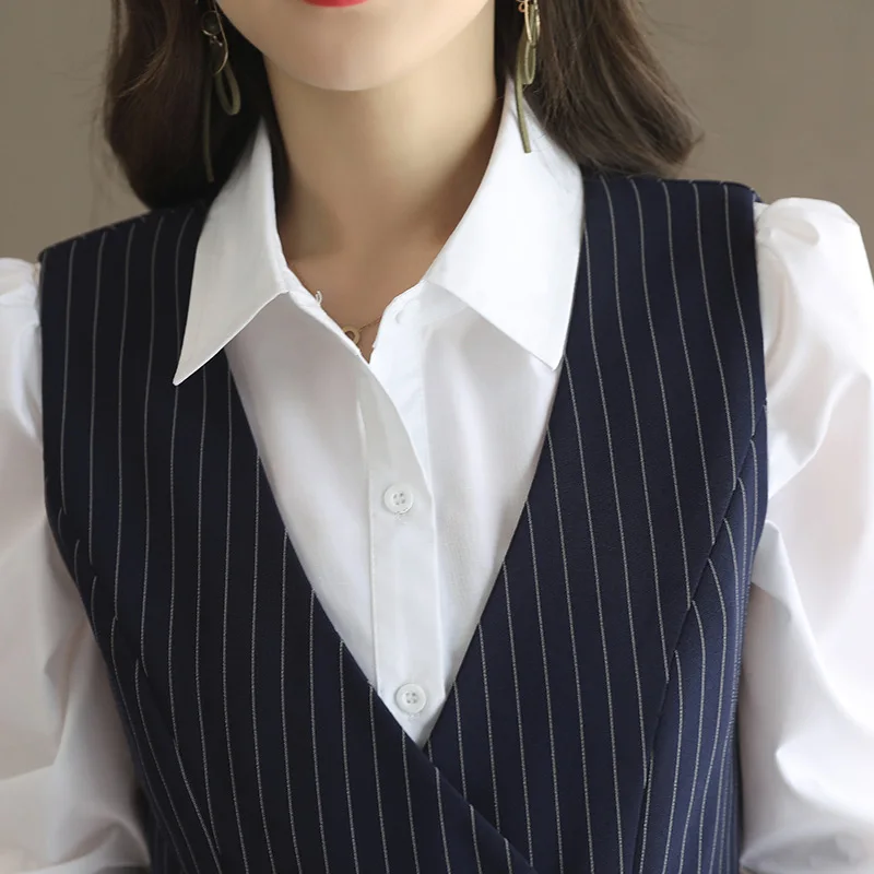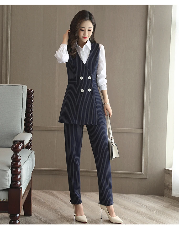 .Images for Set female 2018 spring and summer new temperament white shirt + elegant striped vest +casual pants fashion wild three-piece suit