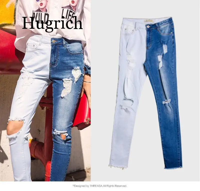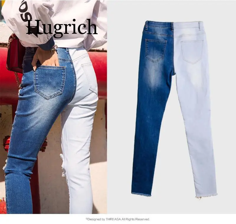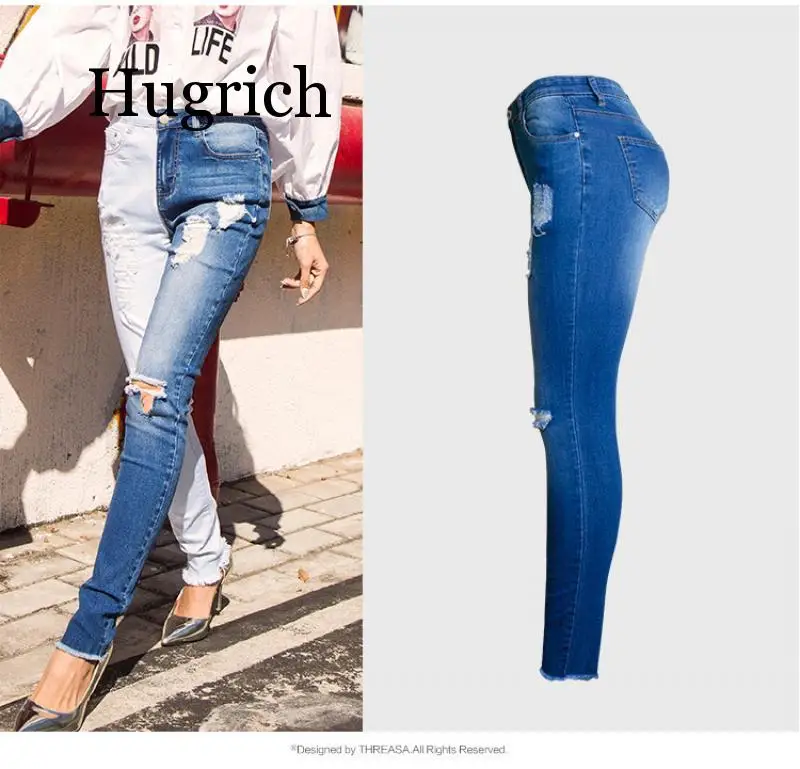 .Pictures for Skinny Ripped Jeans Woman 2020 Contrast Color Slim Jeans For Women Denim Pants Plus Size 4XL