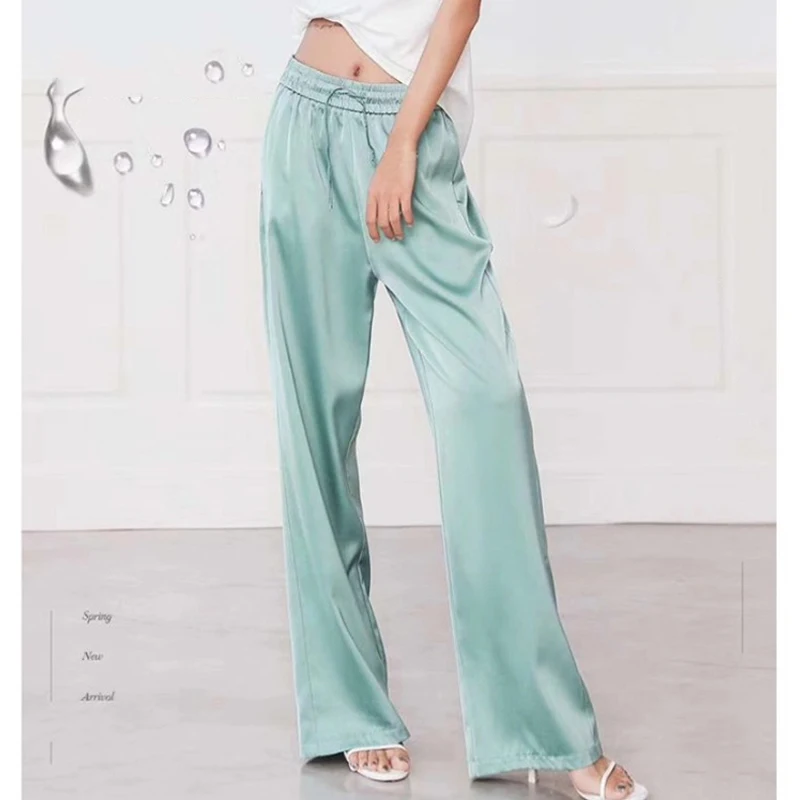 Chance Description of Summer Wide Leg Pants For Women Casual Elastic High Waist 2020 New Fashion Loose Long Pants Milk Silk Pant Trousers Femme