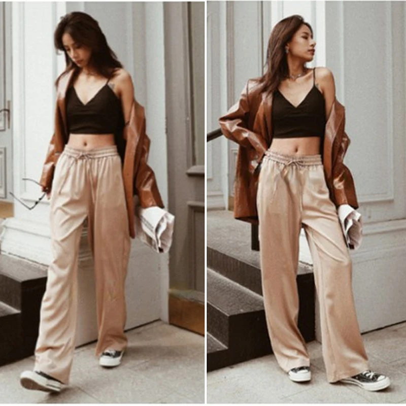 .Pictures of Summer Wide Leg Pants For Women Casual Elastic High Waist 2020 New Fashion Loose Long Pants Milk Silk Pant Trousers Femme