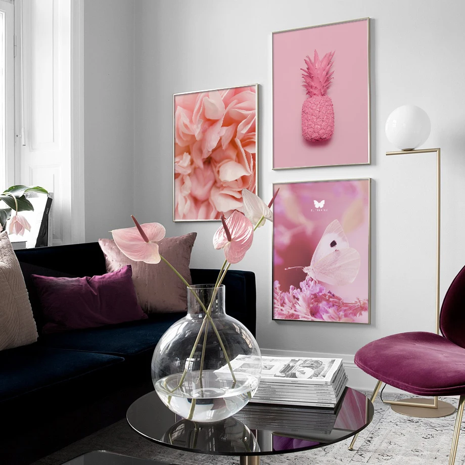 Addition Information of Surrealism Pink Flower Wall Art Canvas Painting Nordic Posters And Prints Wall Pictures For Living Room Scandinavian Home Decor