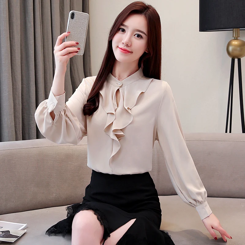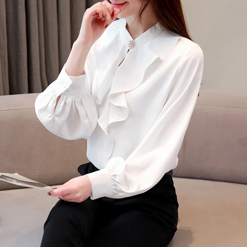 .Gallery of Women Shirts Korean Fashion Women Chiffon Blouses Shirt Plus Size Elegant Women Satin Blouse Shirts Womens Tops and Blouses Tops