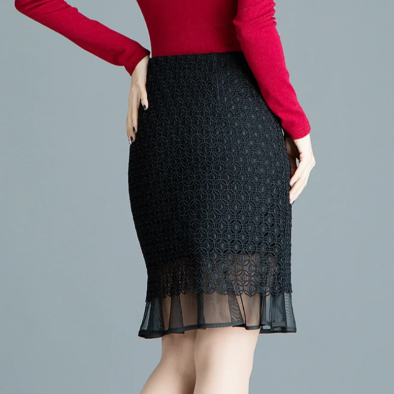 .Gallery for 2020 new spring and autumn office lady plus size brand Hollow lace skirts clothes
