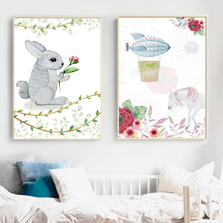 Best Animal Rabbit Deer Horse Nordic Posters And Print Animal Wall Art Canvas Painting Wall Pictures Kids Baby Room Nursery Decor Free Shipping