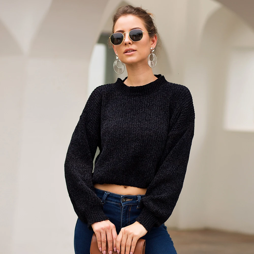 Best Casual O Neck Short Pullovers Women Full Sleeve Winter Knitted Sweater Ladies Plain Color Simple Loose Tops New 2020 Pull Femme Free Shipping
