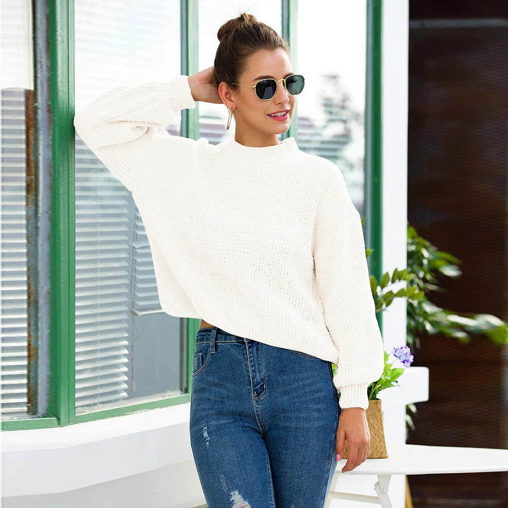 Offer Description of Casual O Neck Short Pullovers Women Full Sleeve Winter Knitted Sweater Ladies Plain Color Simple Loose Tops New 2020 Pull Femme