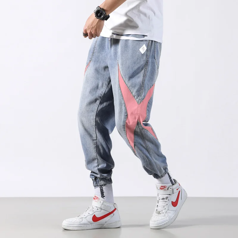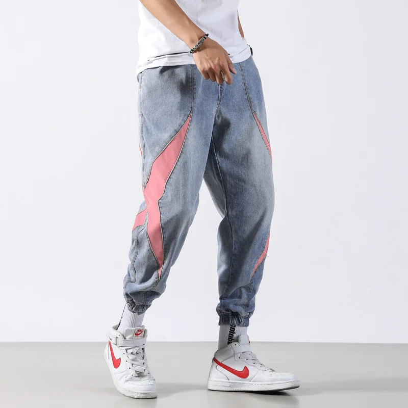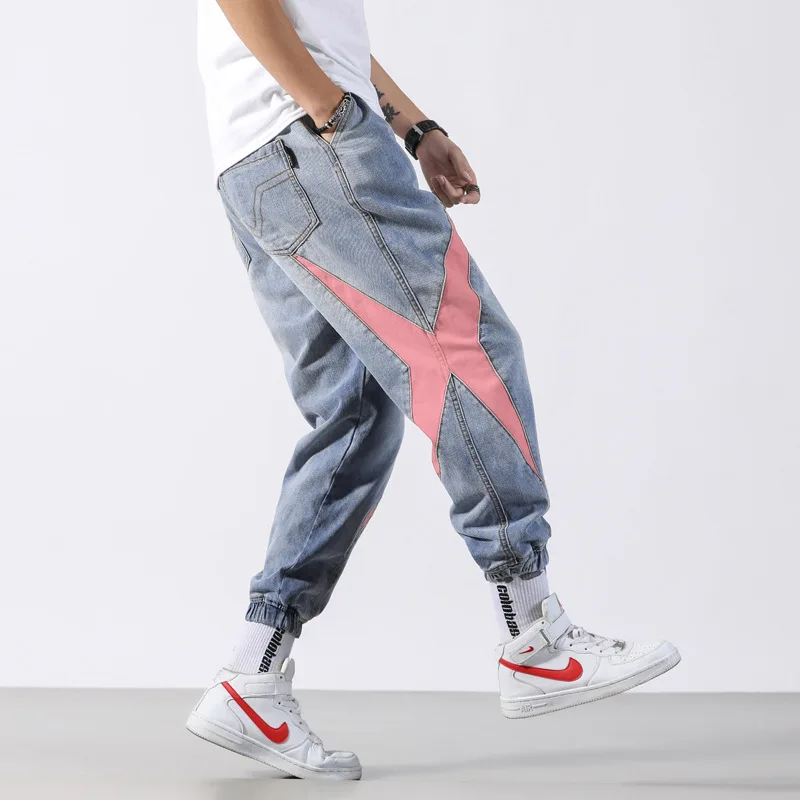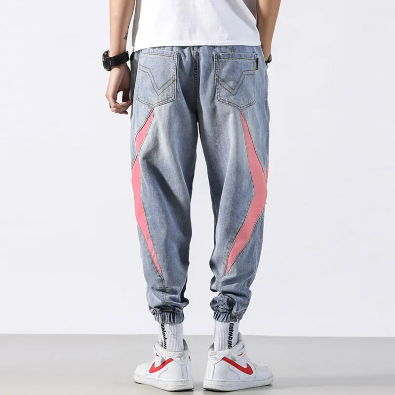Chance Description for Fashion Classical Men Jeans Japanese Style Loose Fit Blue Harem Pants hombre Streetwear Stripe Patch Hip Hop Joggers Jeans Men