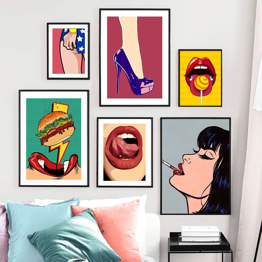 .Gallery of Fashion Red Lips Shoe Sexy Woman Wall Art Canvas Painting Nordic Posters And Prints Wall Pictures For Living Room Home Decor
