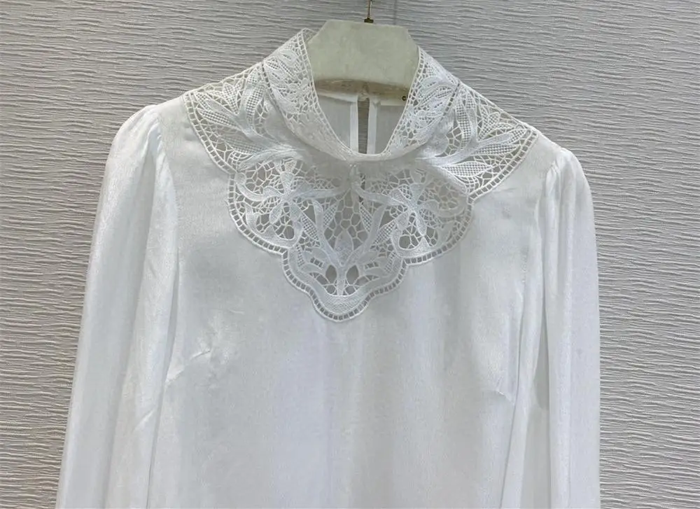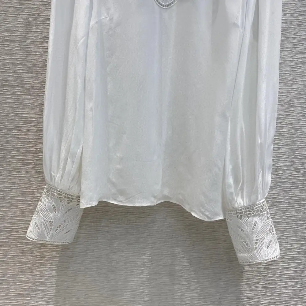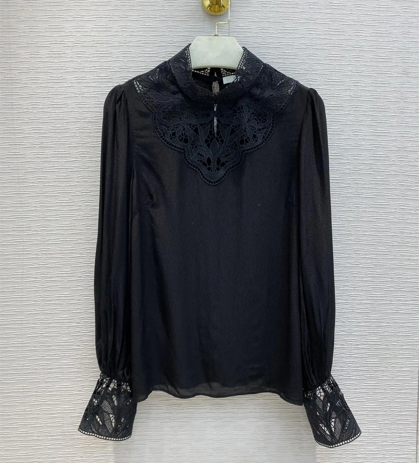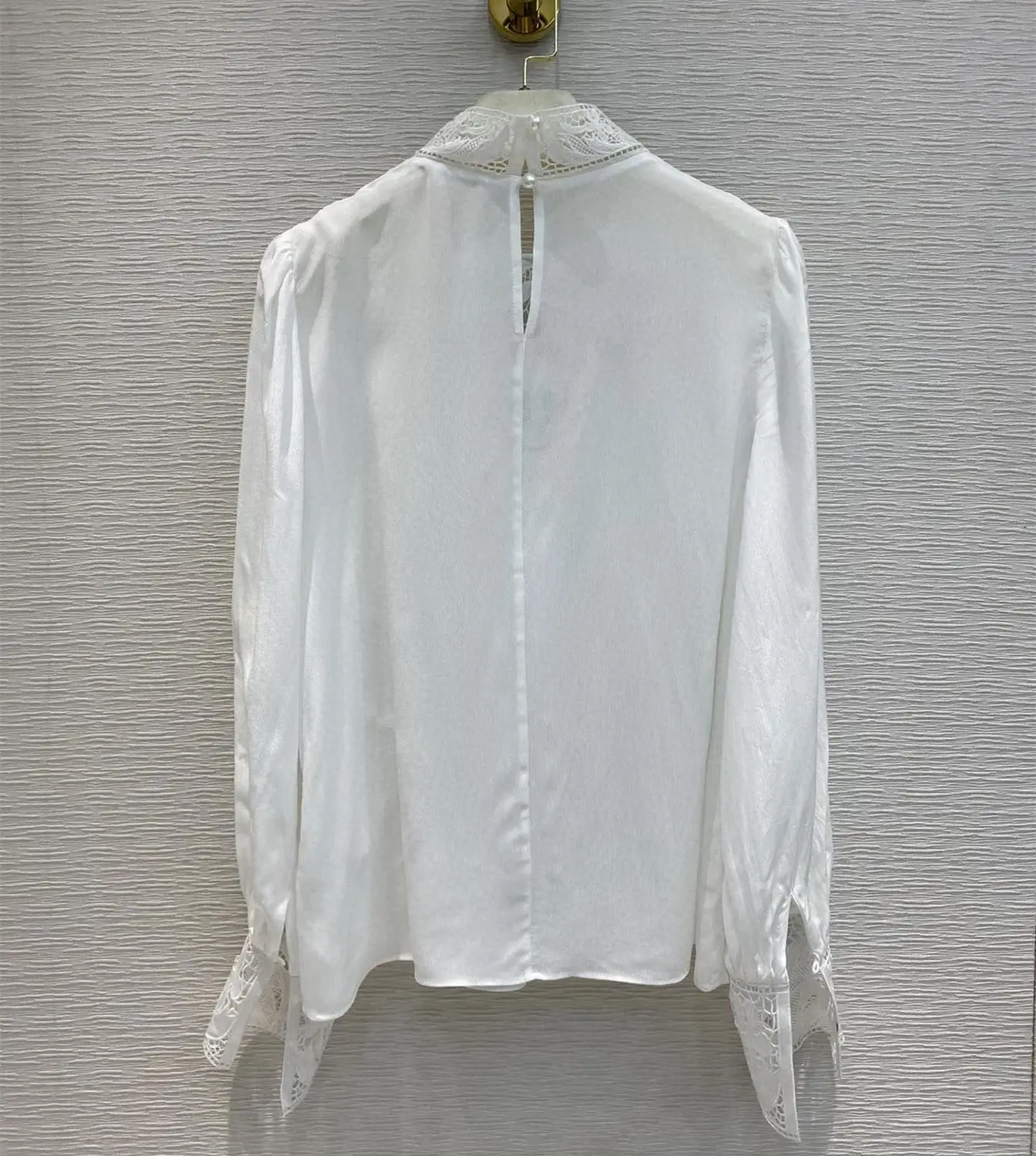 .Gallery for France style women's elegant stand collar Shirts 2020 Spring runways High quality 100% SILK Shirt B663