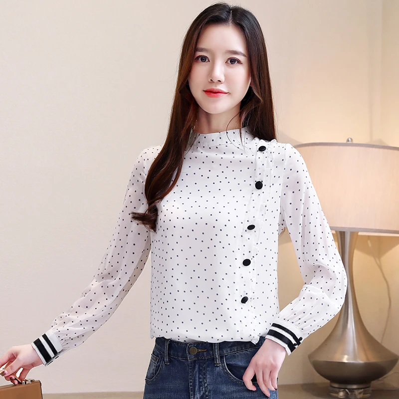 Korean Autumn Women Shirts Woman Chiffon Blouses Woman Dot Blouse Shirt Plus Size Womens Tops and Blouses Blusas Mujer De Moda