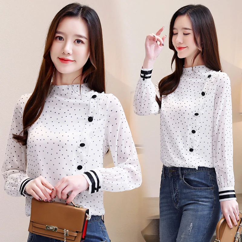 Buy Korean Autumn Women Shirts Woman Chiffon Blouses Woman Dot Blouse Shirt Plus Size Womens Tops and Blouses Blusas Mujer De Moda up to 2098-12-31, and You will Save US $21.99 or 50%, Becuase You Just Pay for 12.83 not Full Price for 25.16