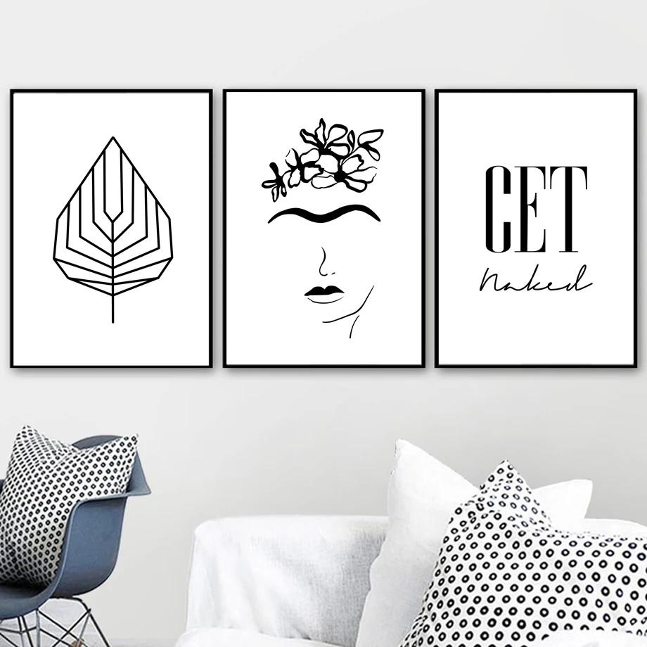 .Images for Minimalist Leaf Men Women Nordic Posters And Print Wall Art Canvas Painting Black White Wall Pictures For Living Room Home Decor