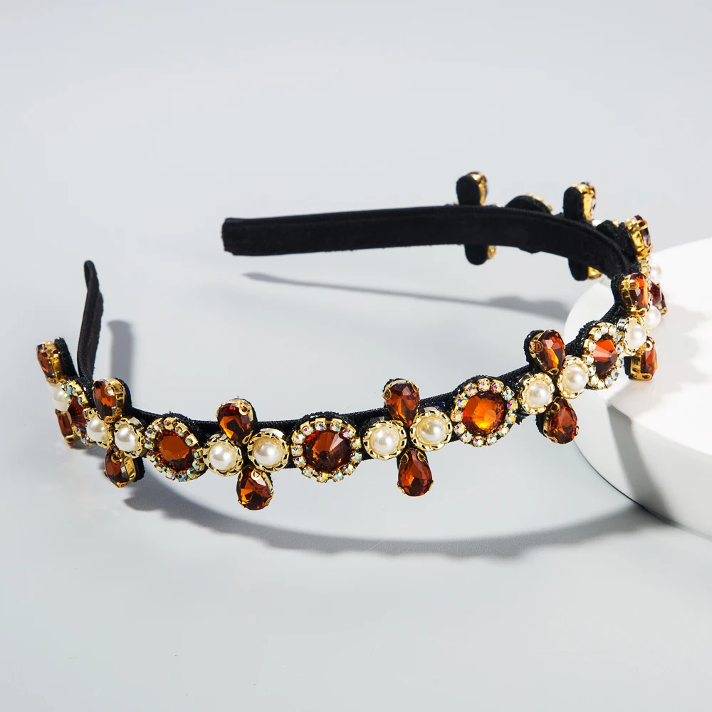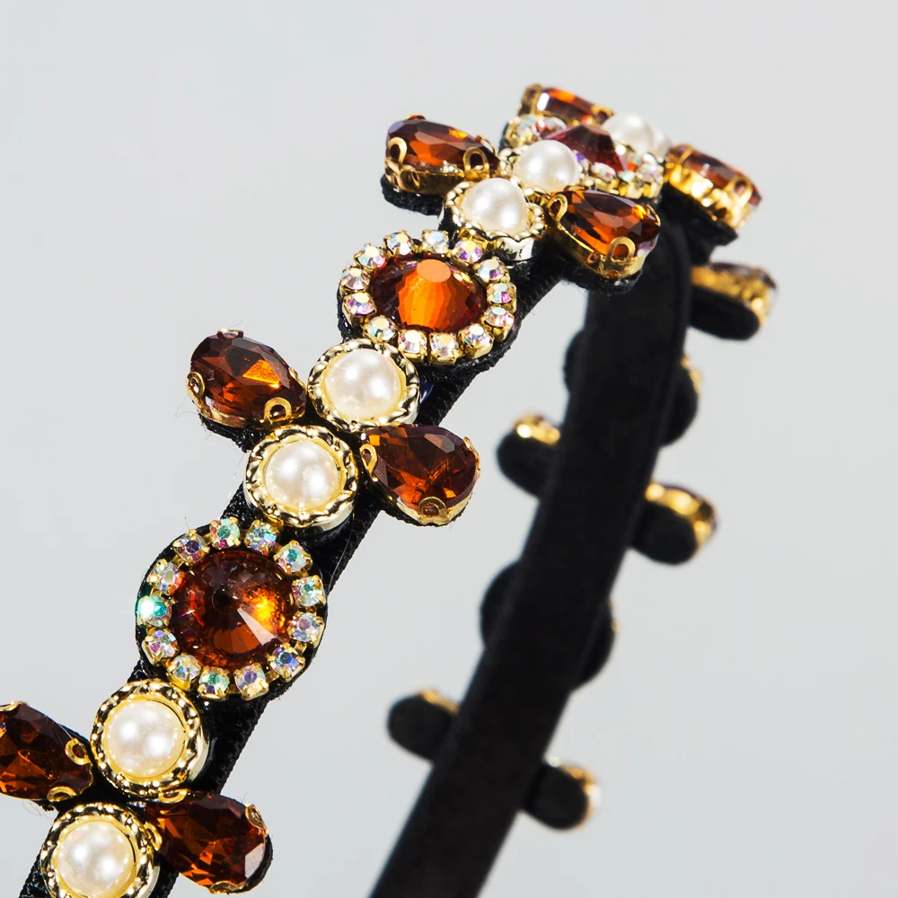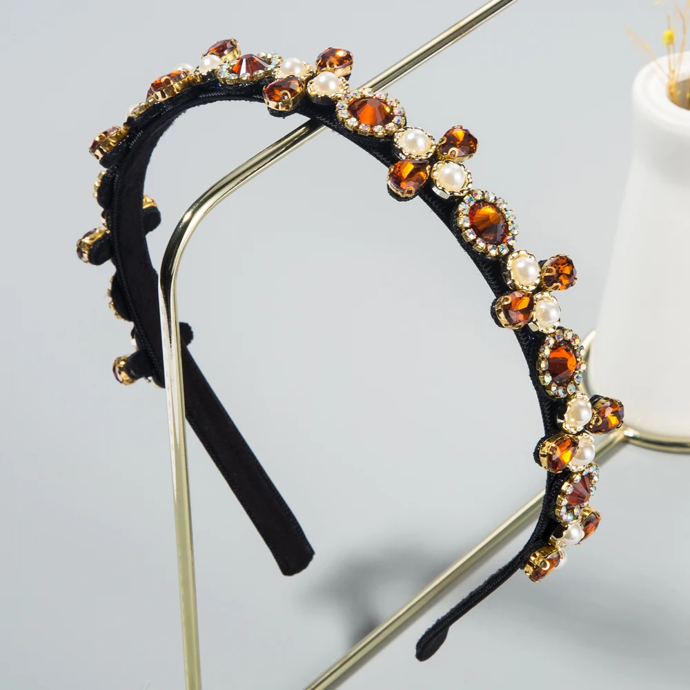 .Gallery for Temperament Baroque Simulated Pearl Headband for Woman Luxury Colorful Crystal Hair Hoop Woman Party Hair Hoop Hair Accessories