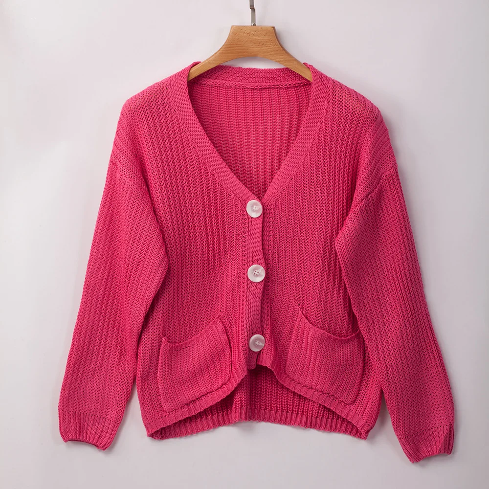 Special Price of V Neck Single-breasted Women Cardigan Pockets Long Sleeve Casual Knitted Sweater Outwear Ladies Solid Knitwear Damen Strickjacke