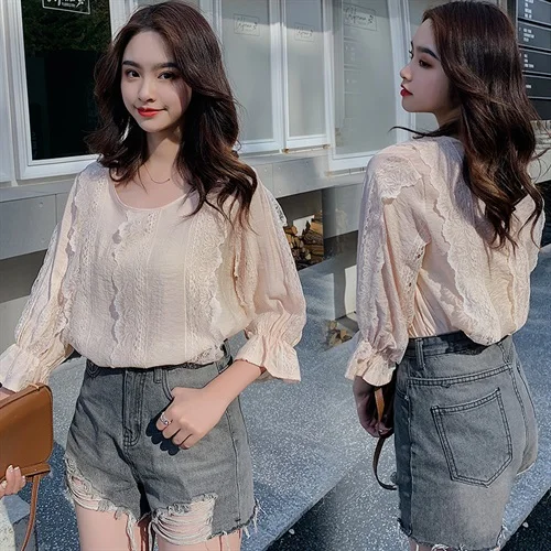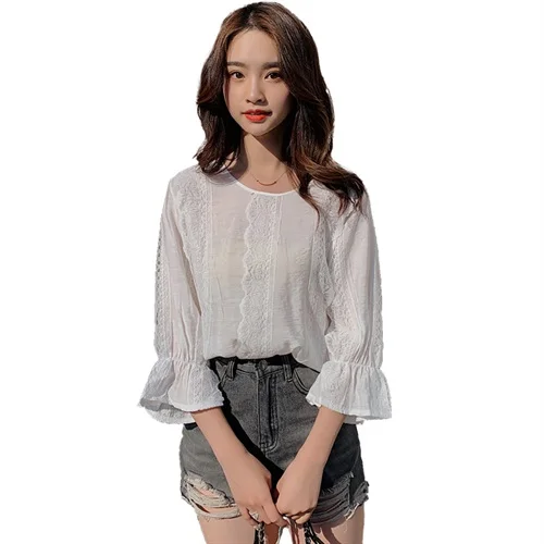 Korean Fashion Women Blouses Women Chiffon Blouse Shirts Women Solid Flare Sleeve Shirt Plus Sizr Lady Tops Blusas Mujer De Moda