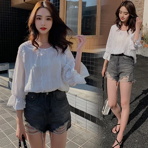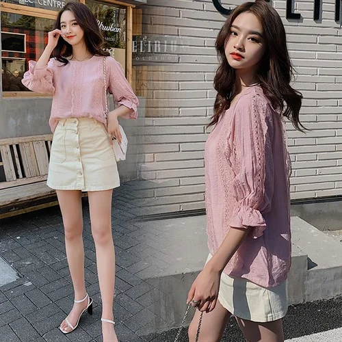 .Gallery of Women Shirt 2020 Spring Fashion Comfortable Simple Cool Short Solid Color Chiffon Blouse Half-sleeve Shirt