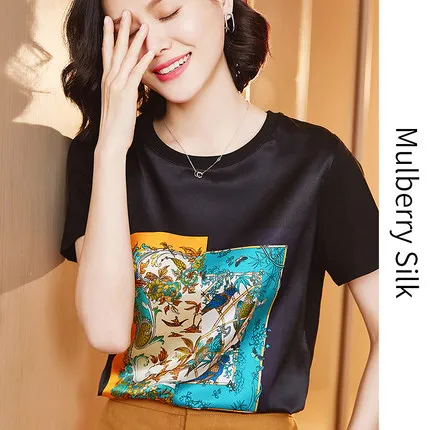 If You search information for Blouses , then 2020 summer new silk T-shirt women's short sleeve printed silk round neck with half sleeve bottoming T-shirt short is possible make you like