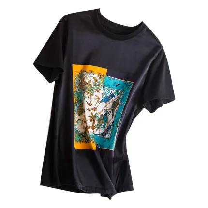 .Pictures for 2020 summer new silk T-shirt women's short sleeve printed silk round neck with half sleeve bottoming T-shirt short
