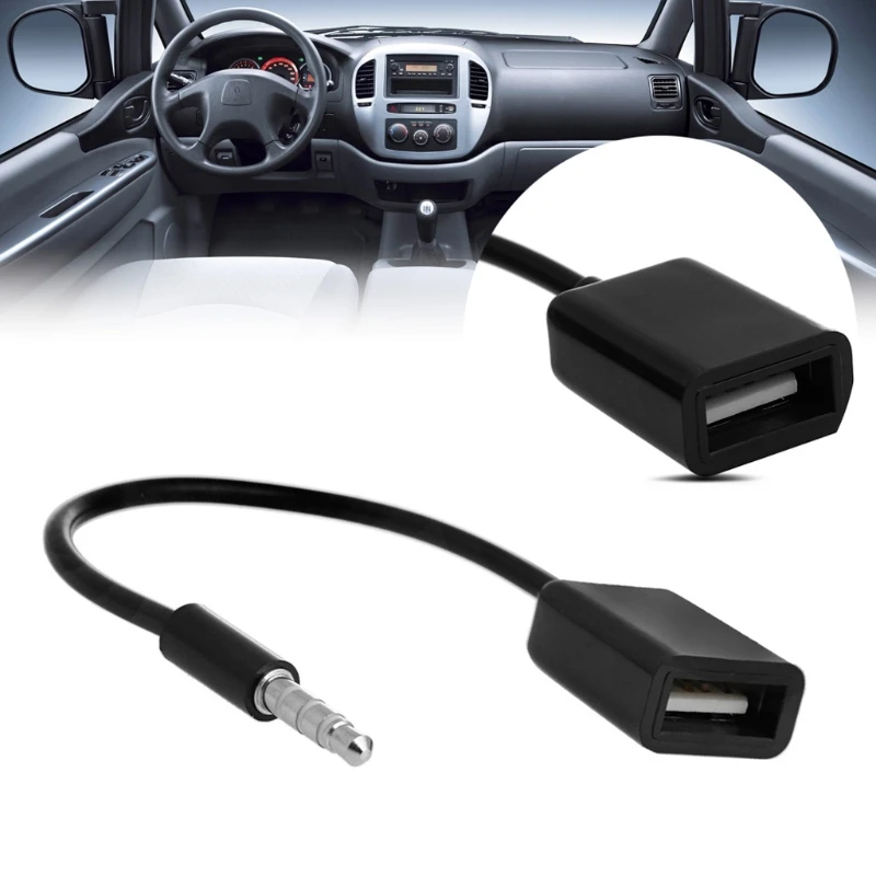 Offer Description for 3.5mm Male AUX Audio Plug Jack To USB 2.0 Female Converter Cable Cord Fr Car MP3