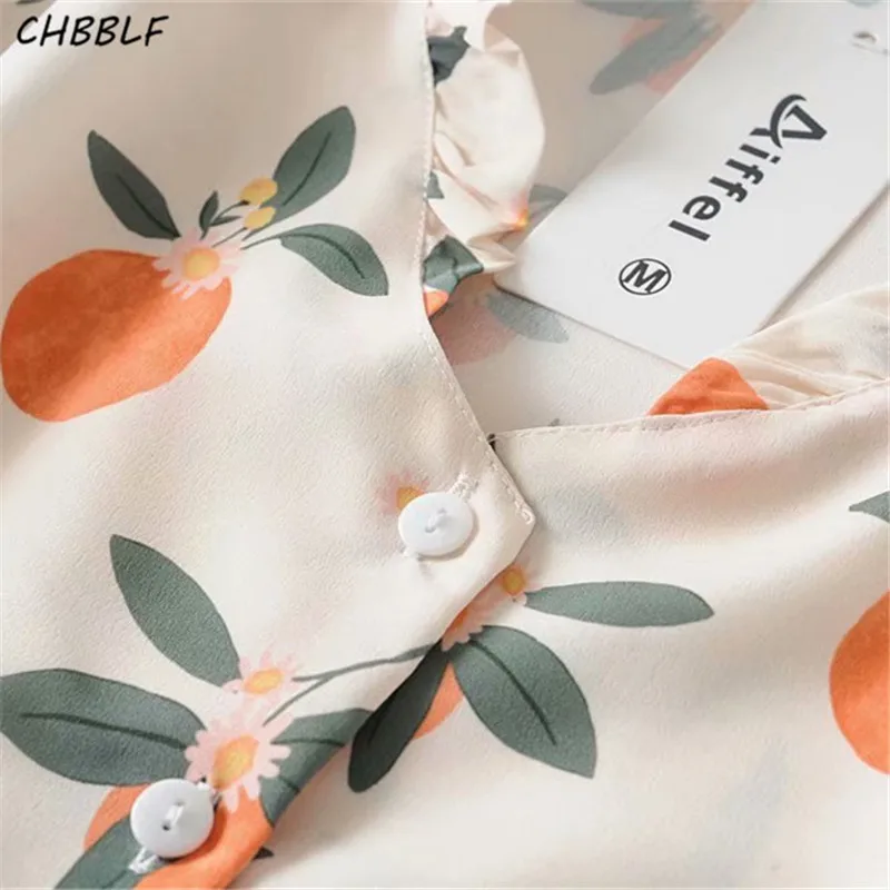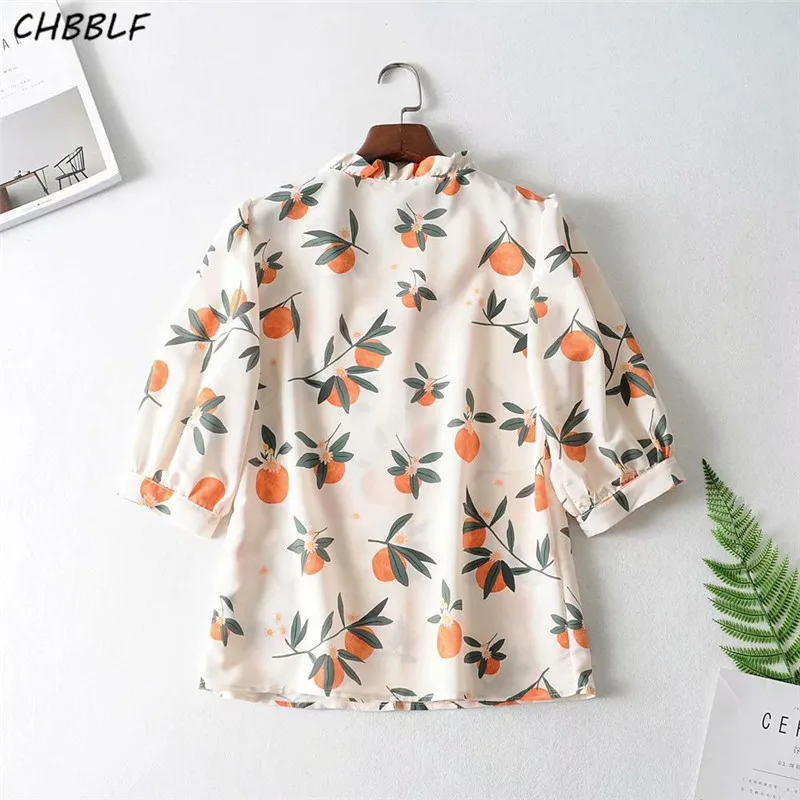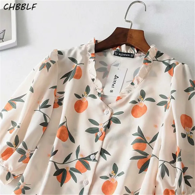 Cheap Price of CHBBLF women sweet print blouse ruffles collar short sleeve shirts female casual chic tops blusas ASF060