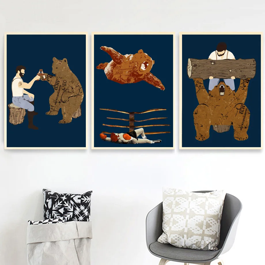 .Images of Funny Pet Bear Man Boxing Wall Art Canvas Painting Posters And Prints Wall Pictures For Living Room Home Decor