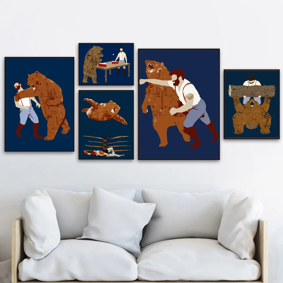 Limited Price for Funny Pet Bear Man Boxing Wall Art Canvas Painting Posters And Prints Wall Pictures For Living Room Home Decor