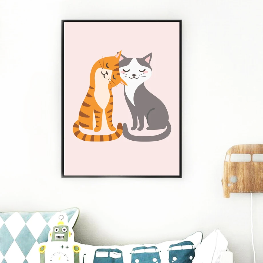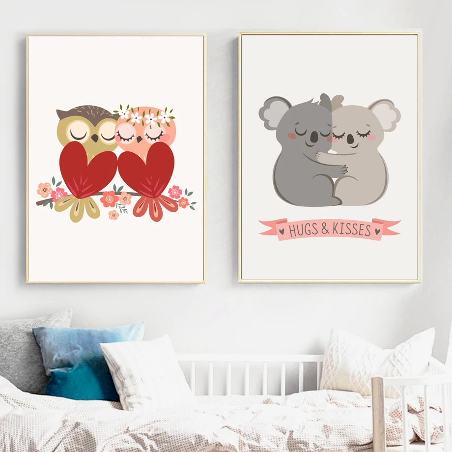 .Gallery of Hugs Kisses Cat Koala Owl Nordic Poster And Prints Wall Art Canvas Painting Wall Pictures For Kids Baby Boy Girl Room Home Decor