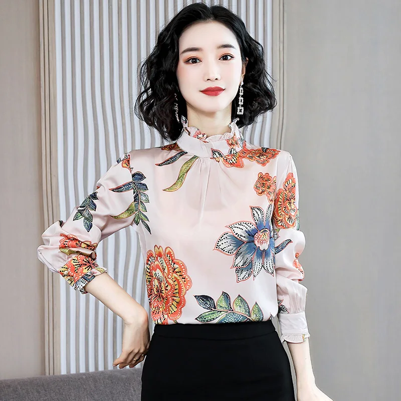 Chance Description of Korean Silk Women Blouses Woman Satin Shirts Women Long Sleeve Blouse Lady Print Blouse Shirt Plus Size Blusas Mujer De Moda Top
