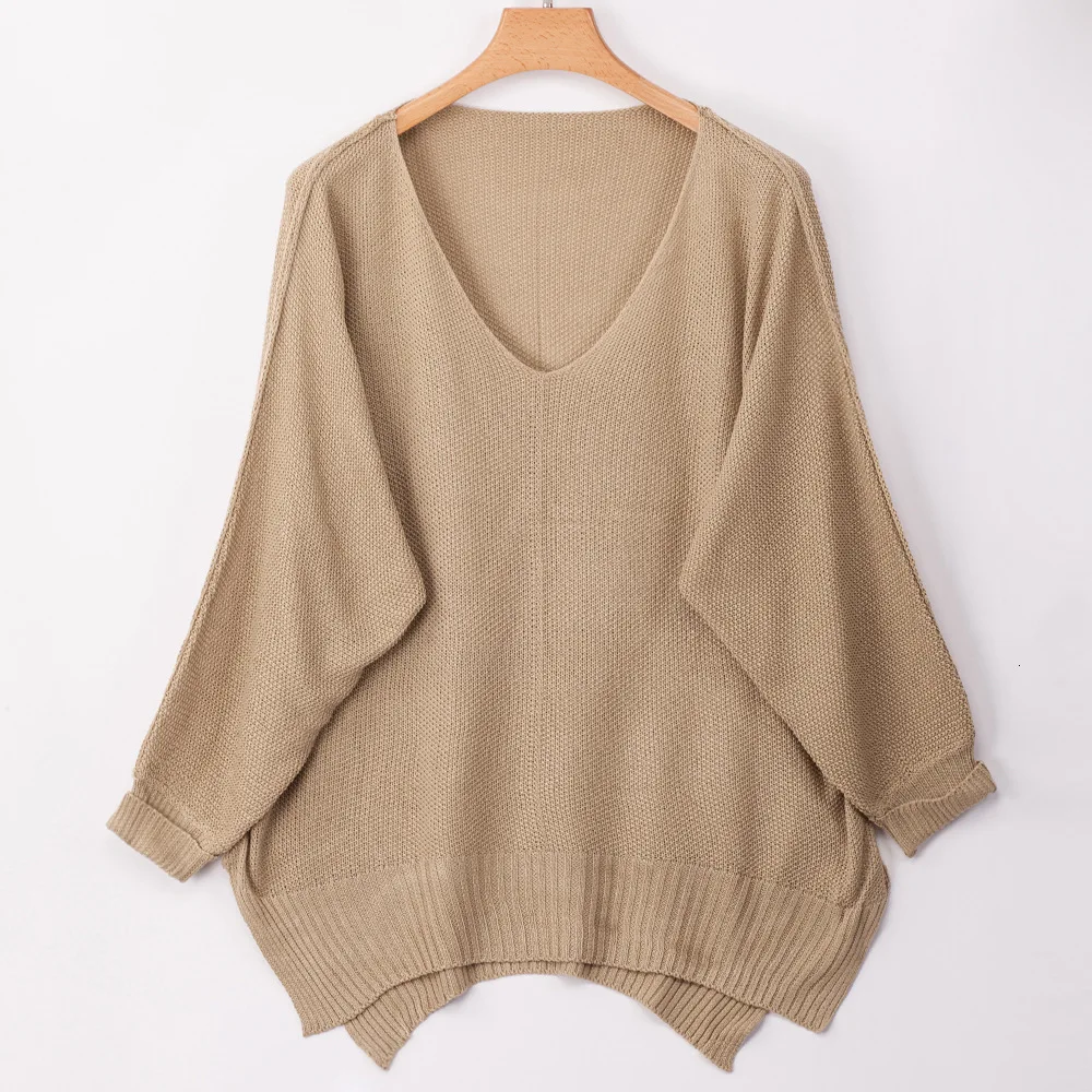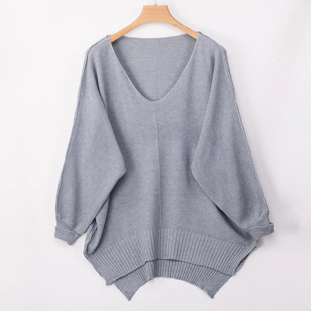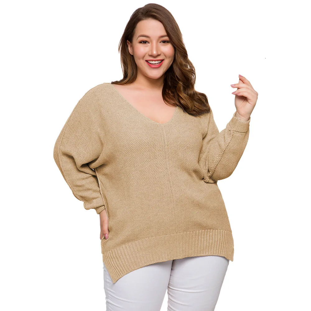Chance Description for Plus Size New Autumn Winter Ladies V Neck Baggy Casual Knitted Pullover Full Sleeve Solid Women Sweaters Tops 2020 Pull Femme
