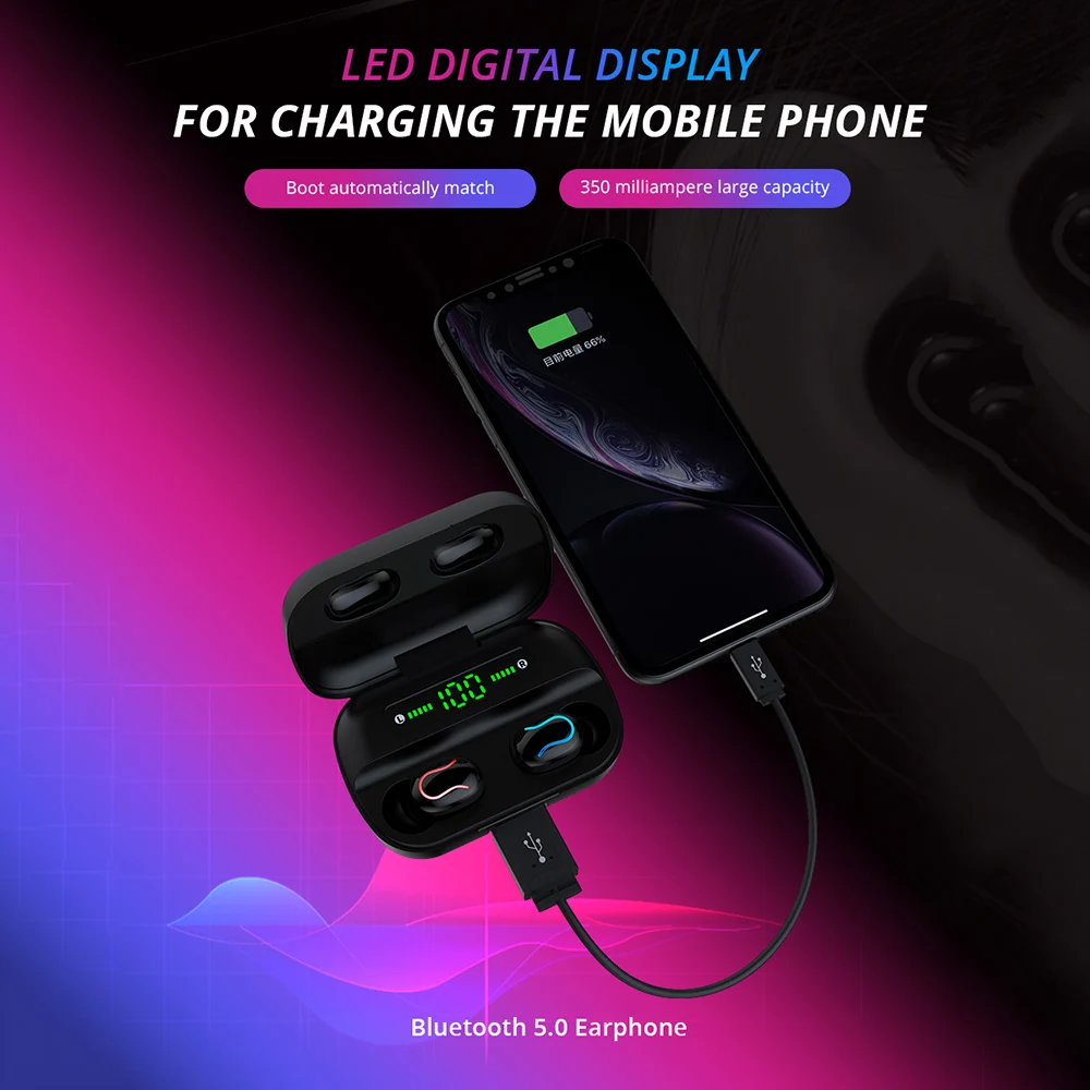 .Gallery of Q82 TWS Led Wireless Earbuds 8D Stereo Mini Bluetooth 5.0 Earphone With Dual Mic Music Sports Earphones Auto Pairing Headset